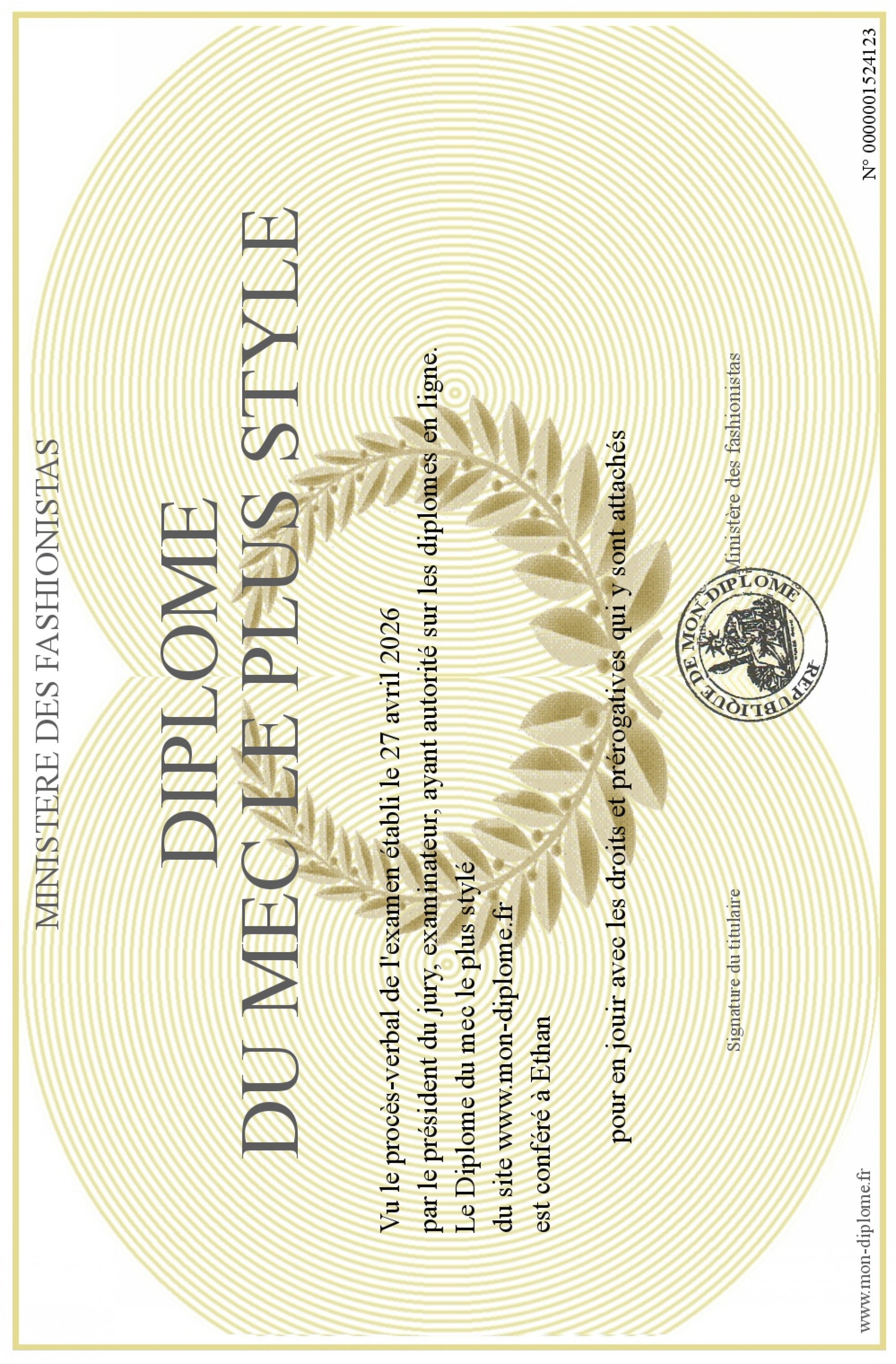 Envoyez par email votre Diplôme du mec le plus stylé personalisé