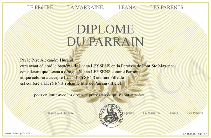 Envoyez par email votre DIPLôME DU PARRAIN personalisé