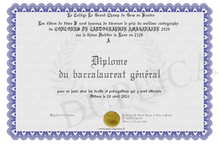 Envoyez par email votre Diplôme du baccalaureat général personalisé