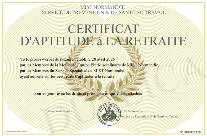 Envoyez par email votre Certificat d'Aptitude à la Retraite personalisé