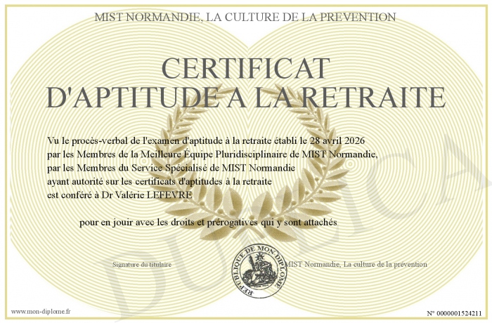 Envoyez par email votre Certificat d'Aptitude A LA RETRAITE personalisé