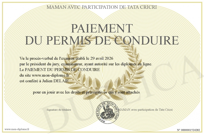 Envoyez par email votre PAIEMENT DU PERMIS DE CONDUIRE personalisé