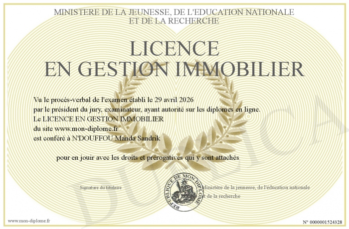Envoyez par email votre LICENCE EN GESTION IMMOBILIER personalisé