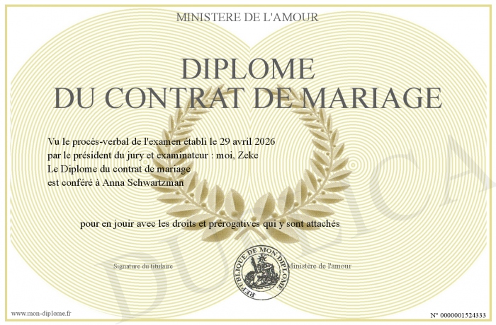 Envoyez par email votre Diplôme du contrat de mariage personalisé