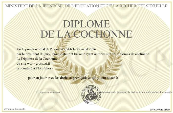 Envoyez par email votre Diplôme de la Cochonne personalisé