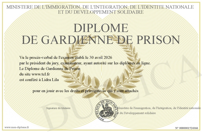 Envoyez par email votre Diplôme de Gardienne de Prison personalisé