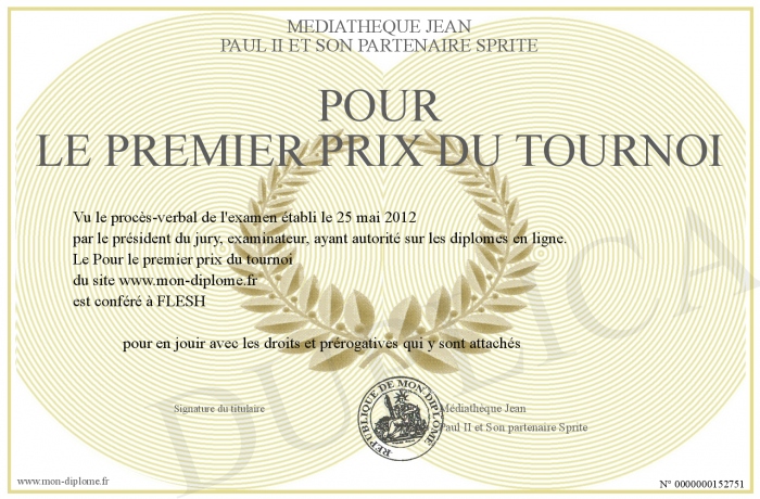 Envoyez par email votre Pour le premier prix du tournoi personalisé