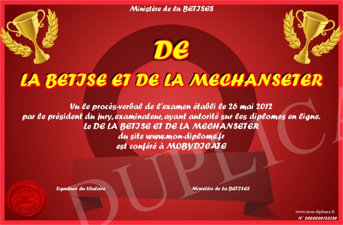 Envoyez par email votre DE LA BETISE ET DE LA MECHANSETER personalisé