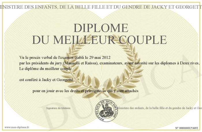 Envoyez par email votre Diplôme du meilleur couple personalisé
