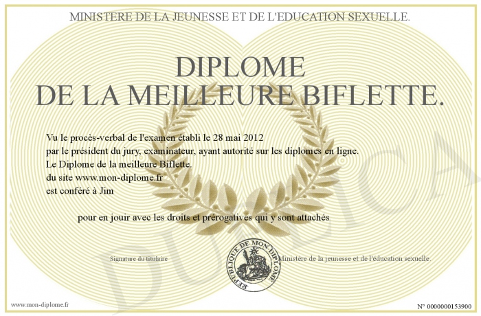 Envoyez par email votre Diplôme de la meilleure Biflette. personalisé
