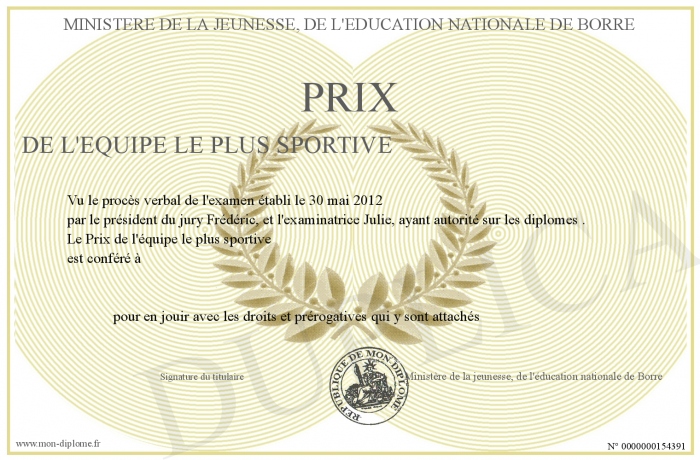 Envoyez par email votre Prix de l'équipe le plus sportive personalisé