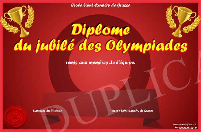 Envoyez par email votre Diplôme du jubilé des Olympiades personalisé