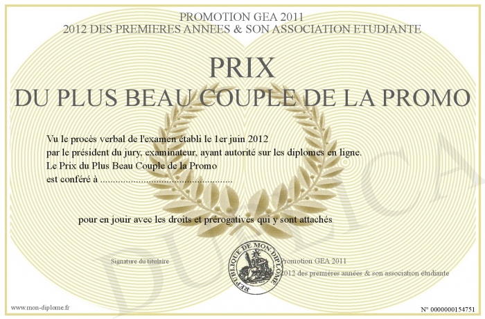Envoyez par email votre Prix du Plus Beau Couple de la Promo personalisé