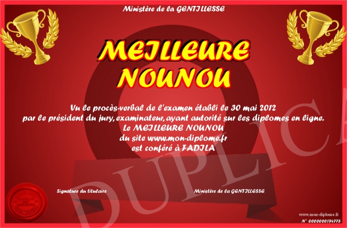 Envoyez par email votre MEILLEURE NOUNOU personalisé
