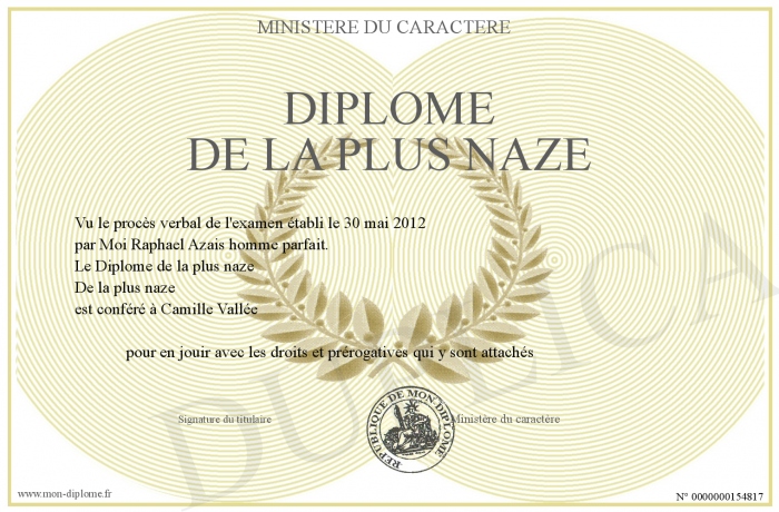 Envoyez par email votre Diplôme de la plus naze personalisé