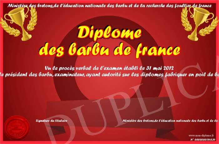 Envoyez par email votre Diplôme des barbu de france personalisé