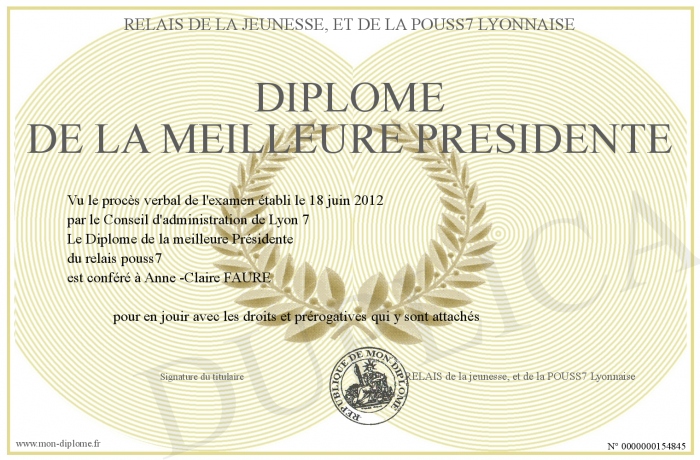 Envoyez par email votre Diplôme de la meilleure Présidente personalisé