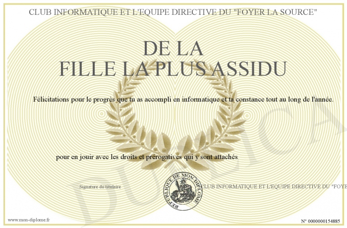 Envoyez par email votre DE LA FILLE LA PLUS ASSIDU personalisé