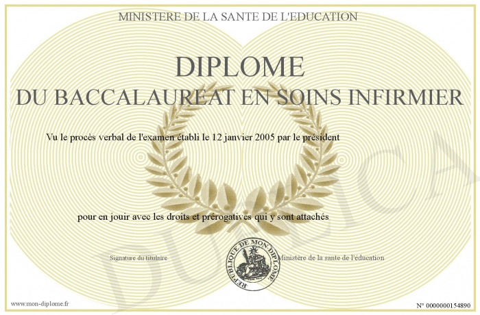 Envoyez par email votre Diplôme du baccalaureat en soins infirmier personalisé