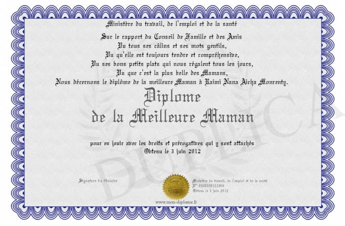 Envoyez par email votre Diplôme de la Meilleure Maman personalisé