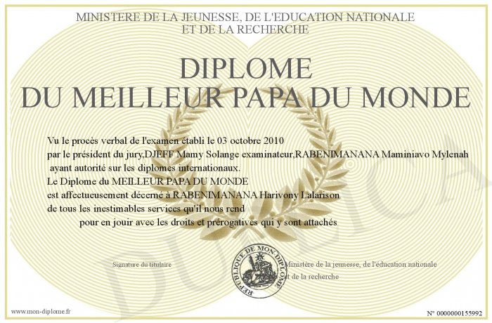 • Diplôme du MEILLEUR PAPA DU MONDE