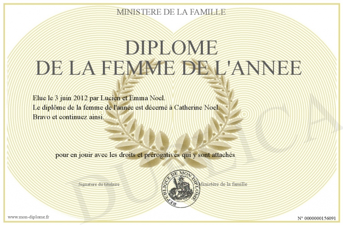 Envoyez par email votre Diplôme de la femme de l'année personalisé