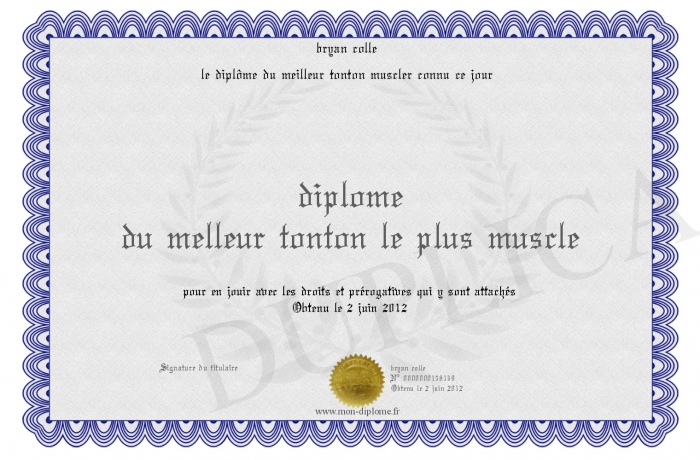 Envoyez par email votre diplome du melleur tonton le plus muscle personalisé
