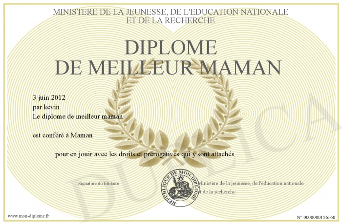 Envoyez par email votre Diplôme de meilleur maman personalisé