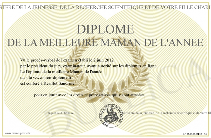 Envoyez par email votre Diplôme de la meilleure Maman de l'année personalisé