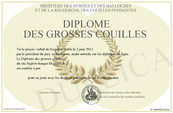 Envoyez par email votre Diplôme des grosses couilles personalisé