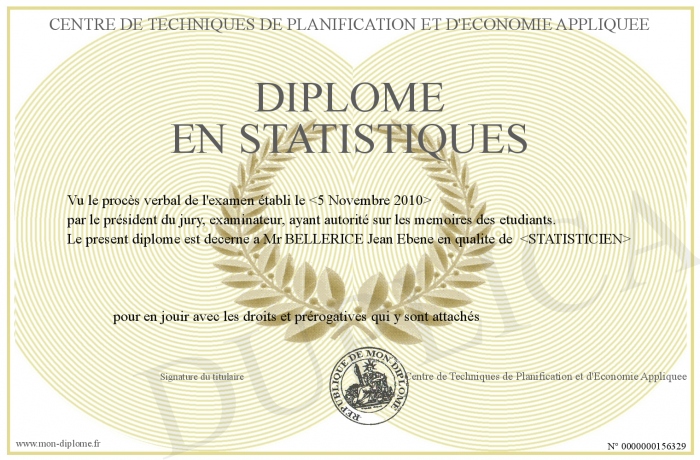Envoyez par email votre Diplôme en Statistiques personalisé