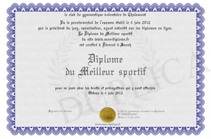 Envoyez par email votre Diplôme du Meilleur sportif personalisé