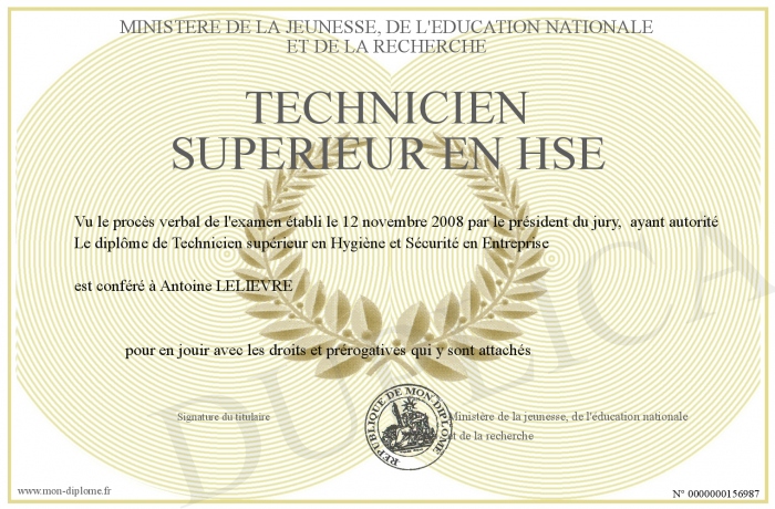 Envoyez par email votre Technicien supérieur en HSE personalisé
