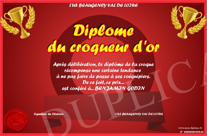 Envoyez par email votre Diplôme du croqueur d'or personalisé