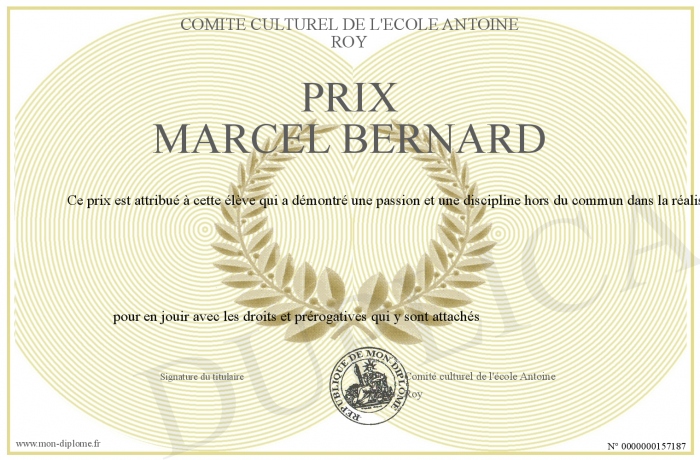 Envoyez par email votre Prix Marcel Bernard personalisé