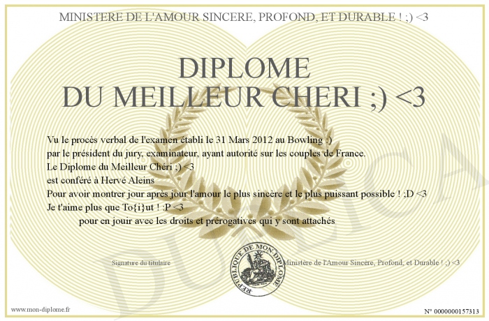 Envoyez par email votre Diplôme du Meilleur Chéri ;) -3 personalisé