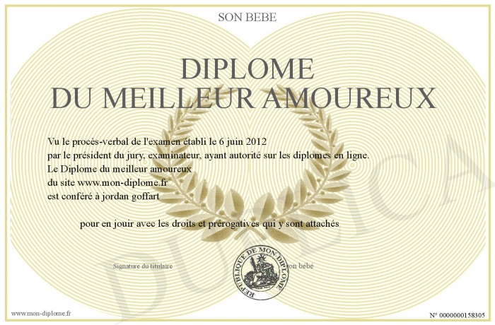Envoyez par email votre Diplôme du meilleur amoureux personalisé