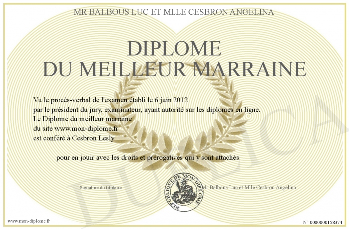 Envoyez par email votre Diplôme du meilleur marraine personalisé
