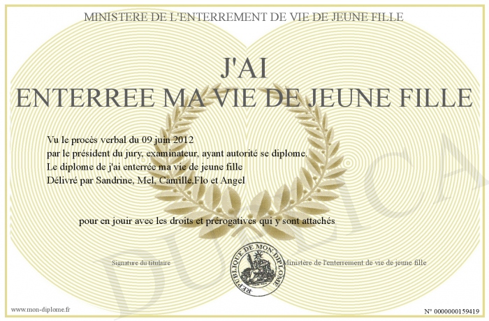 envoyé par le Ministère de l'enterrement de vie de jeune fille !