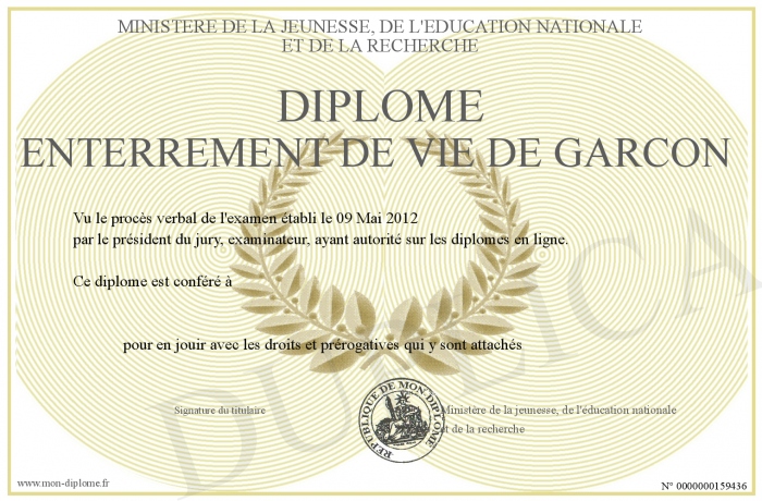 Envoyez par email votre DIPLOME ENTERREMENT DE VIE DE GARCON personalisé