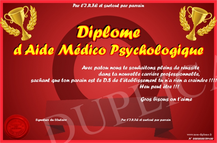 Envoyez par email votre Diplôme d Aide Médico Psychologique personalisé