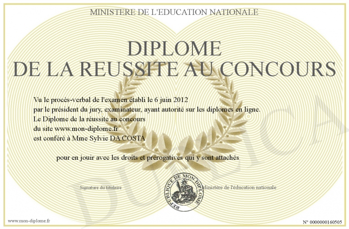 Envoyez par email votre Diplôme de la réussite au concours personalisé