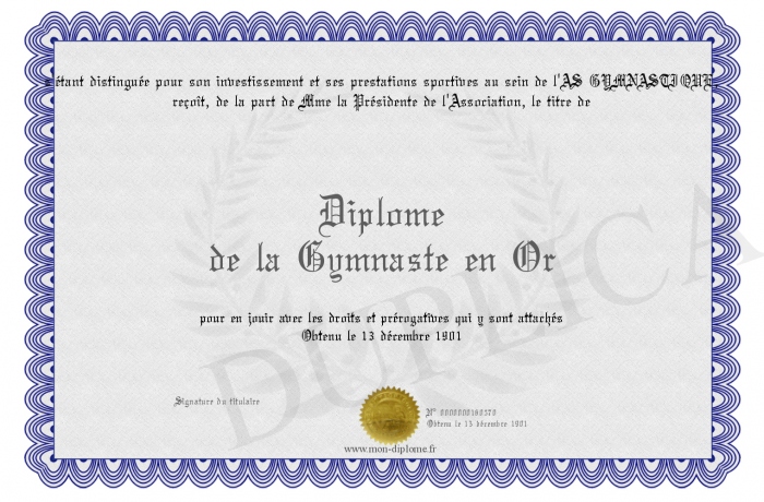 Envoyez par email votre Diplôme de la Gymnaste en Or personalisé