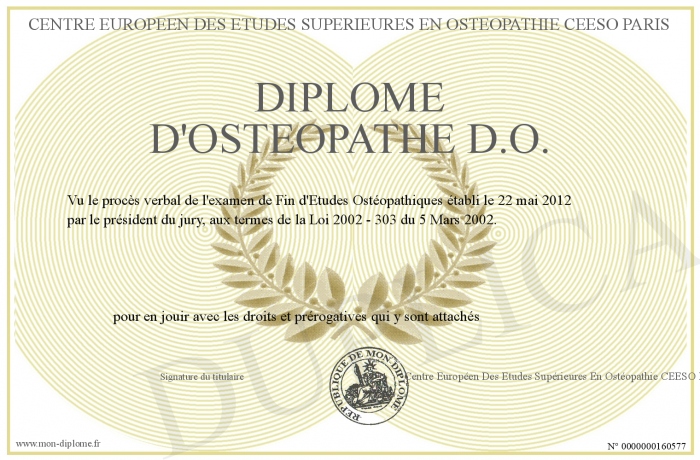 Envoyez par email votre Diplôme d'Ostéopathe D.O. personalisé