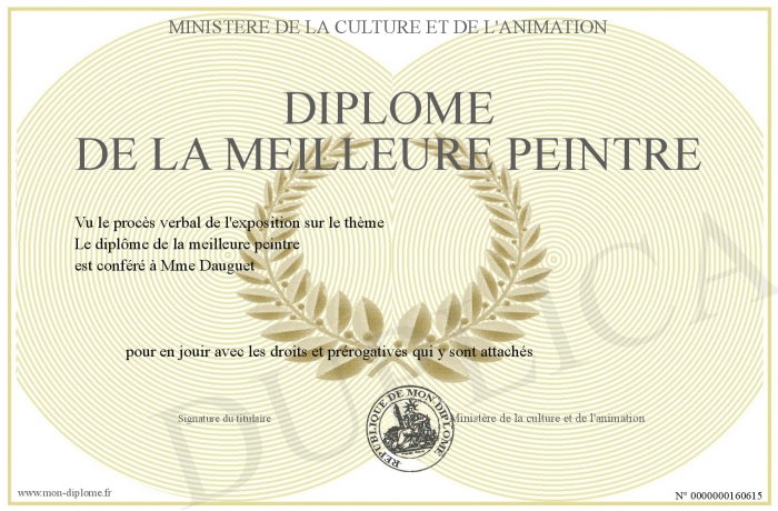 Envoyez par email votre Diplôme de la meilleure peintre personalisé