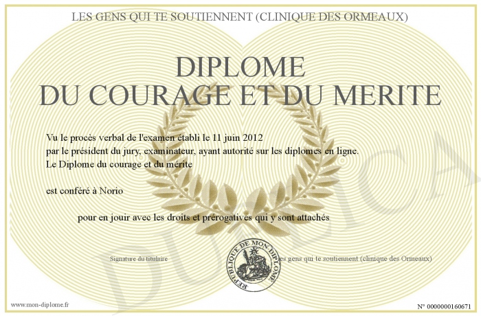 Envoyez par email votre Diplôme du courage et du mérite personalisé