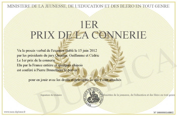 Envoyez par email votre 1er prix de la connerie personalisé