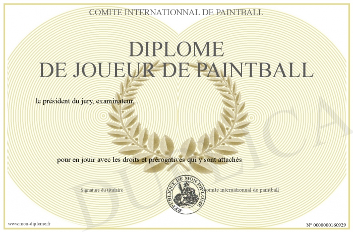 Envoyez par email votre Diplôme de joueur de paintball personalisé