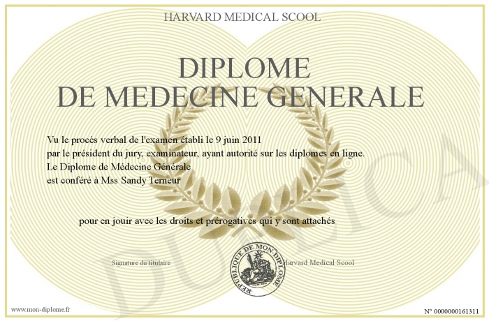 Envoyez par email votre Diplôme de Médecine Générale personalisé