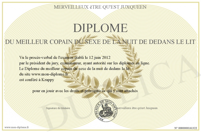 Envoyez par email votre Diplôme du meilleur copain du sexe de la nuit de dedans le lit personalisé